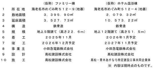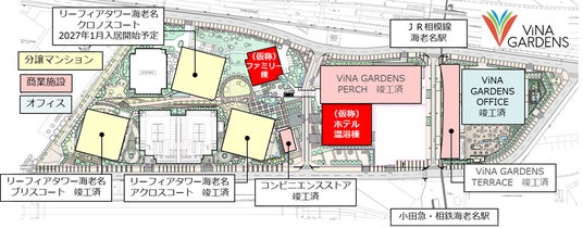 小田急電鉄株式会社(本社:東京都新宿区 社長:鈴木 滋)は、2025年12月19日(金)に、小田急線海老名駅西口の開発エリア「ViNA GARDENS」について、2027年春に開業予定の「(仮称)ファミリー棟」と、2028年開業予定の「(仮称)ホテル温浴棟」の新築工事計画を決定したことをお知らせします。同開発エリアは全9開発区画からなり、本2棟によりすべての開発を完了します。なお、具体的なテナント情報等は、改めてお知らせします。