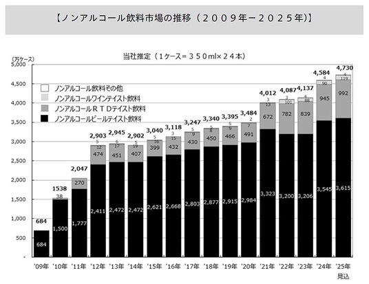 ・ノンアルコール飲料市場は伸長を続け、過去最大規模に