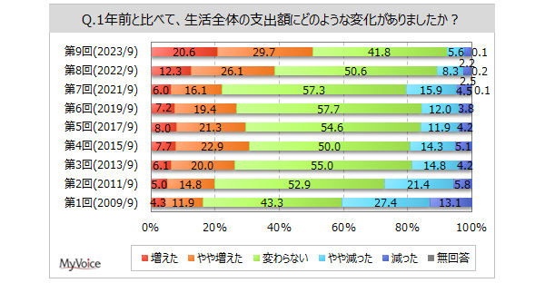 マイボイスコム株式会社(東京都千代田区、代表取締役社長:高井和久)は、9回目となる『消費意識』に関するインターネット調査を2023年9月1日~5日に実施しました。調査結果をお知らせします。