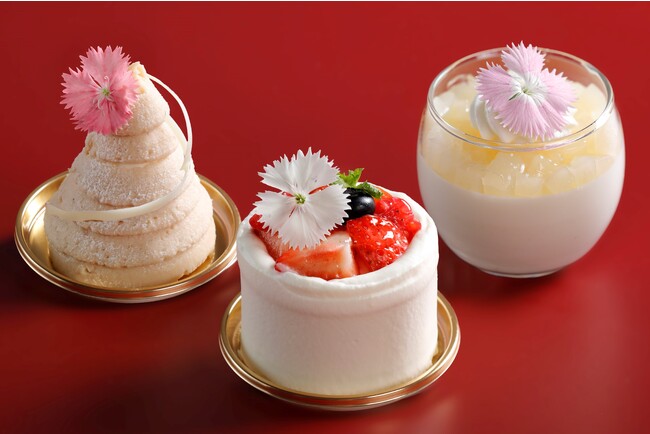 クリスマスシーズンにちなみ、ツリーをイメージした和栗のモンブランや真っ白なフロマージュ・ブランのムースなど雪を連想させるホワイトカラーのスイーツをご用意しました。いずれもなめらかな口どけをお楽しみいただける、冬におすすめのムースケーキです。ご自宅用はもちろん、手土産にも最適です。