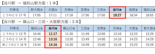 1.一部の特急「こうのとり」号を谷川駅に臨時停車