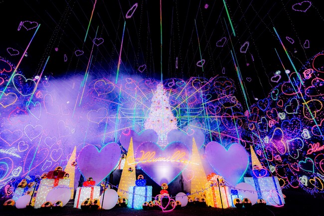 今年初登場するエリア「ハートフルイルミネーション」では、クリスマスツリーと空間いっぱいにちりばめられたハートのイルミネーションが音楽に連動して光り輝く、エンターテインメントショーを展開し、クリスマスまでの期間、約5分間の特別ショーをお楽しみいただけます。
