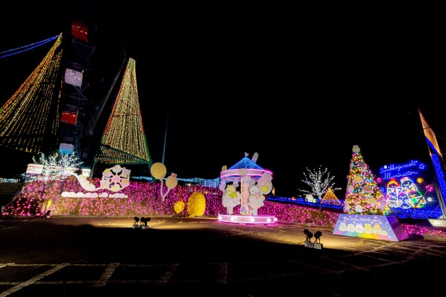 今年は、人気キャラクター「すみっコぐらし」のイルミネーションエリア「すみっコぐらしイルミネーション」が誕生いたしました。全長250mの「虹のリフト」に乗り、降りたった山頂エリアが、すみっコぐらしイルミネーションエリアです。「すみっコぐらし」のストーリー「かわうそとすみっコキャンプ」・「たぴおかパーク」・「星空さんぽ」・「おばけのナイトパーク」・「とかげの夢」をテーマにしたイルミネーションエリアが光り輝きます。