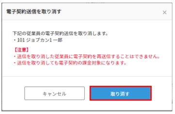 2、電子契約一覧より「送信取消」欄の「取り消す」をクリックします。
