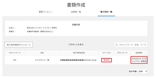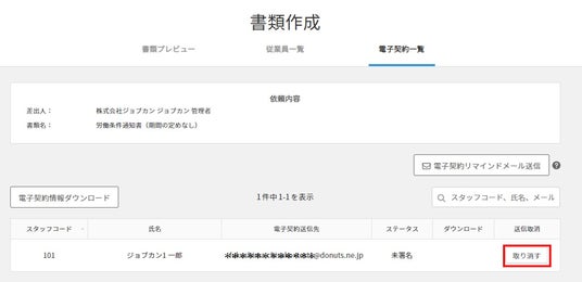 株式会社DONUTS(東京都渋谷区、代表取締役:西村啓成)が提供するクラウド型人事労務システム『ジョブカン労務HR』は「電子契約機能」をアップデートし、送信済みの電子契約書類を、送信先が確認中であれば取り消すことが出来る機能「電子契約送信取り消し機能」を新たに実装いたしました。