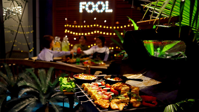カフェのテラス席で自分たちで焼くから楽しい、手ぶらBBQプランです。