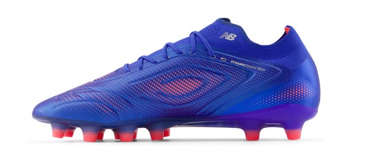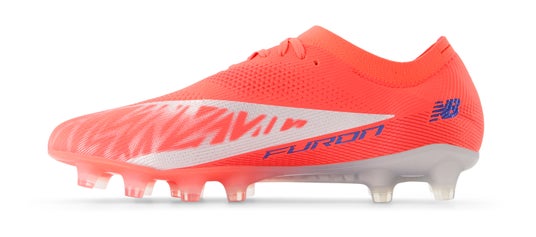 「FURON ELITE HG V5」は、スピードを武器にしているプレーヤーのために、アッパーには細さを変えた糸をデータに基づいて編み込んだHYPOKNITを使用し、高いサポート性と履き心地を両立しました。軽量性・機動性に優れるHGプレートが、プレー中の安定性と爆発的な加速をサポートしています。甲のストライクゾーンを広くクリアに確保した、NB史上最軽量のスパイクです。