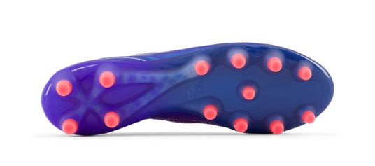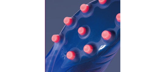 円錐形のスタッド構造と前足部のTPUアングルリムスタッドを備え、縦横無尽なプレーでも360度あらゆる方向への牽引力と安定した足元をサポート。