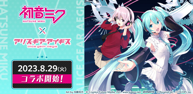 株式会社コロプラ(代表取締役社長:宮本貴志、本社:東京都港区、以下「コロプラ」)は、スマートフォン向けゲーム『アリス・ギア・アイギス(以下、アリスギア)』で8/29(火)より開催する『初音ミク』コラボの情報を公開しました。