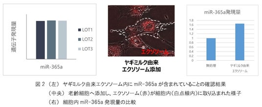 <ヤギミルク由来エクソソームは、老齢細胞内にmiR-365aを届けて増やすことを確認>