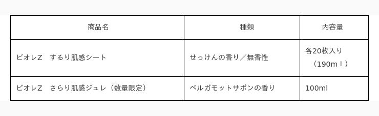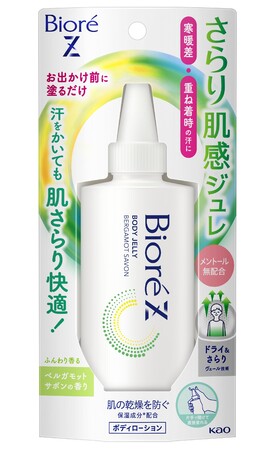 また同シリーズから、お出かけ前に肌に塗っておくだけで、寒暖差や重ね着などで汗をかいても、ずーっとさらっとドライな状態で過ごせる『ビオレZ さらり肌感ジュレ』も数量限定で同日より発売。汗をかいて不快に感じる部位に直接塗っておくだけで、ドライ&さらりヴェール技術により汗を乾かし続け、肌をずっとさらっとドライに保ちます。