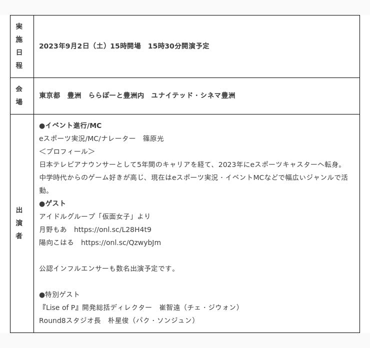 「ユナイテッド・シネマ豊洲」で9月2日(土)に実施となりますオフラインイベント「Lies of P JAPAN PREMIUM」について、多くのご応募をいただき、ありがとうございました。