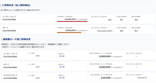 法人契約または使用者カード単位にカード利用関連の通知・制限を設定でき、より安心してカードを利用できます。
