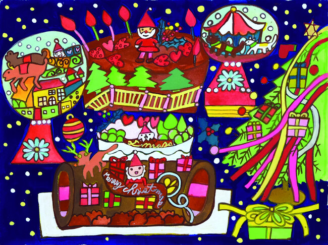 本作品展では、アーティスト社員として活躍する障害者アーティストが、彼らの感性でイキイキと描いた絵画を季節ごとにテーマを変え展示する「アート村シーズンギャラリー」にて、「クリスマス」をテーマにしたワクワクと心が躍る煌びやかな作品13点を展示いたします。