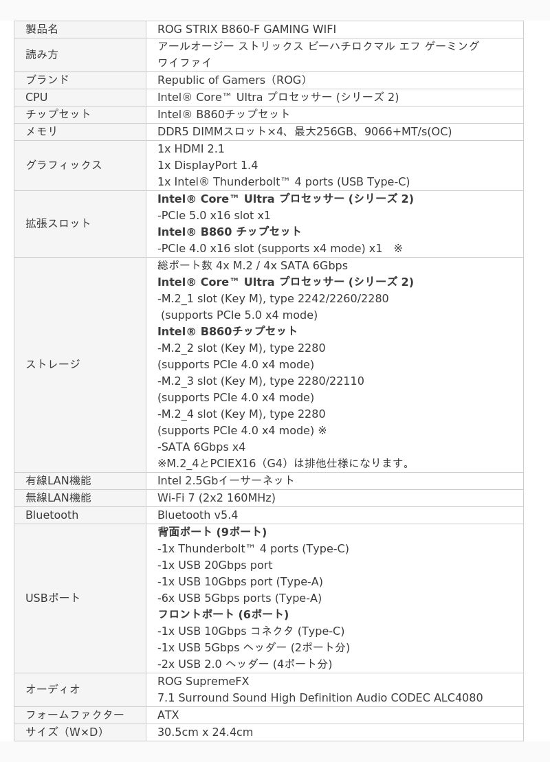 ASUS JAPAN株式会社は、ゲーミングブランドRepublic of Gamersより、Intel LGA1851対応のB860チップセット採用のROG STRIX シリーズマザーボード「ROG STRIX B860-F GAMING WIFI」およびMicroATXの「ROG STRIX B860-G GAMING WIFI」を発表しました。