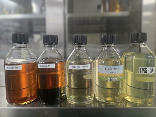 (※1)廃食油に含まれる不純物を、薬品との化学反応などで除去・蒸留により製造した軽油代替燃料として利用可能なもの