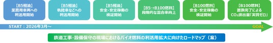 今回利活用するバイオ燃料は、軽油1Lに対して約5%混合された「B5軽油※4」とし、段階的な混合率向上に向けた安全・安定稼働の検証を進め、安全性とCO2排出削減の両立を目指します。