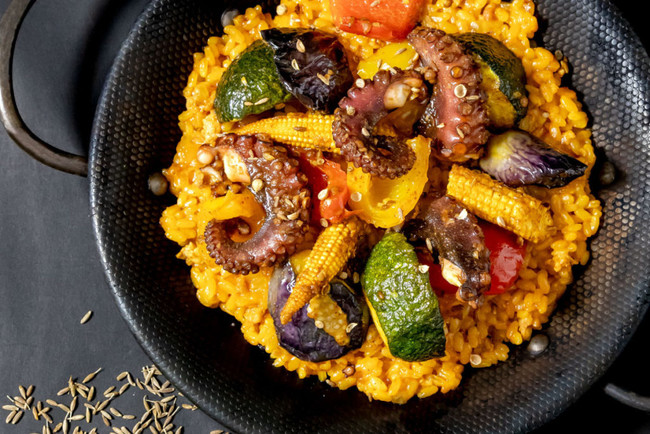 タコと彩り夏野菜のスパイシーパエリア