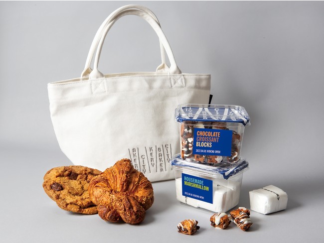定番人気商品のプレッツェルクロワッサン、クッキーやマシュマロなどのおすすめ商品を新デザインのオリジナルトートバッグに詰め合わせたお得なセット商品。