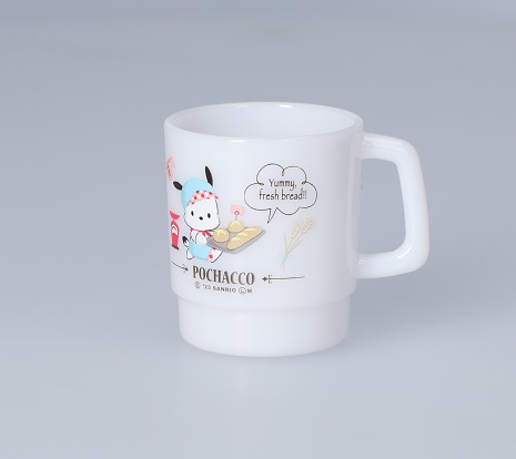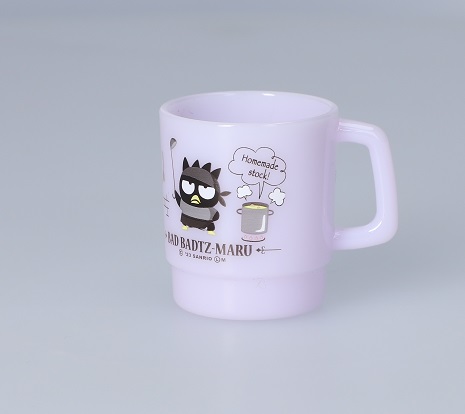 サンリオのキャラクターより、ポチャッコ、タキシードサム、けろけろけろっぴ、バッドばつ丸、ハンギョドン、あひるのペックルの個性あふれる6人の男のコたちで結成されたユニット「はぴだんぶい」の、カプセルに収まるミニチュアサイズのマグカップが登場します。各キャラクターをイメージした淡いパステルカラーのカップに、「はいだんぶい」のみんながそれぞれお料理をしているシーンをあしらった、全6種のデザインです。
