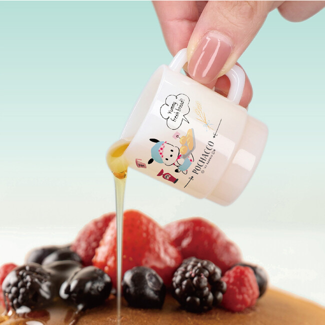 食品衛生法の基準をクリアし食器としても使用可能で、およそ3~4cmのミニサイズながら、パンケーキに添えるメープルシロップ入れとして、コーヒーに添えるミルクピッチャーとして大活躍します。スタッキングも可能なため、それぞれのキャラクターを集めて重ねて飾ってみたり、ミニふせんや印鑑を立てて収納してみたりなど、ミニチュアサイズの小物入れとして使用するのにもおすすめです。どのキャラクターが出るかは回してみてのお楽しみ!全国のカプセルトイ自販機でお楽しみください。