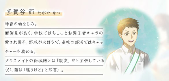 節の親友で不愛想な保城臨(ほうしろりん)という男子生徒。