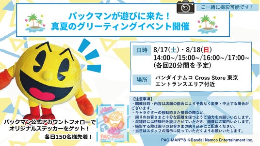 「バンダイナムコ Cross Store 東京」にて、『パックマン』と記念撮影ができるグリーティングイベントを開催いたします。