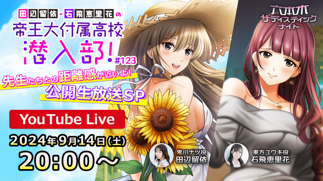 サディスティックナイト」のYouTube公式番組の公開生放送「田辺留依・石飛恵里花の帝王大付属高校