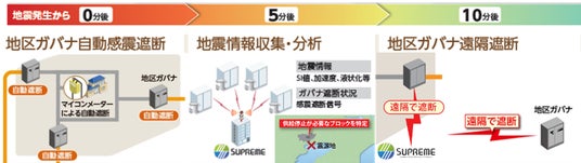 各センサーからリアルタイムに取得した情報を「SUPREME」に連携することで、被害エリアでの迅速なガス供給停止と安全なエリアへのガスの安定供給を両立することができます。