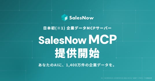 株式会社SalesNow(本社:東京都渋谷区、代表取締役:村岡 功規、以下 SalesNow)は、1,400万件超の企業・組織データベースをAIツールから直接利用可能にするSalesNow APIのMCP(Model Context Protocol)対応を開始いたします。