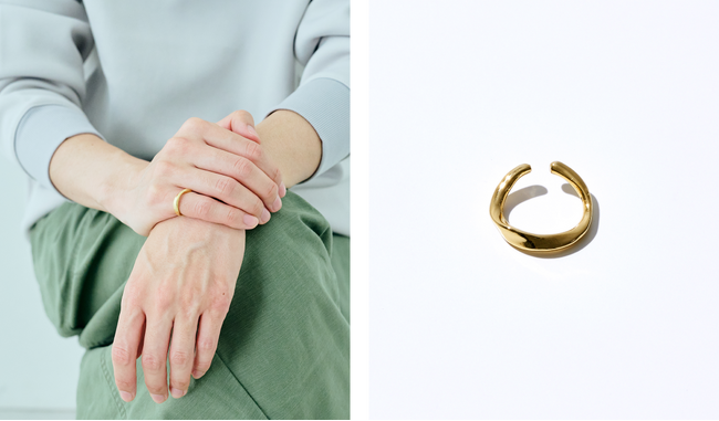 繊細な2本のラインを描くブレスレット。冬の装いでは、ニットの袖の上から着用し、コーデにメリハリをつけるのもおすすめです。