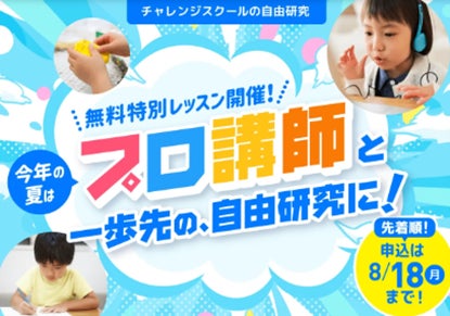ベネッセのオンラインならいごと「チャレンジスクール」では、無料でご参加いただける自由研究の特別イベントを開催しています。プロの講師によるレクチャーのもと、周囲と差をつける一歩先の自由研究のヒントとなります。