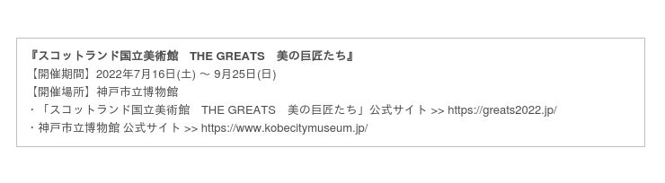 株式会社ポトマックが運営する神戸エリアの14店舗と、神戸市立博物館 『スコットランド国立美術館 THE GREATS 美の巨匠たち』とのタイアップを、2022年7月16日(土) ~ 9月25日(日)まで開催。