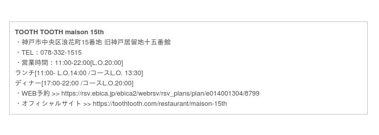 ■TOOTH TOOTH maison 15th / トゥース トゥース メゾン ジュウゴ