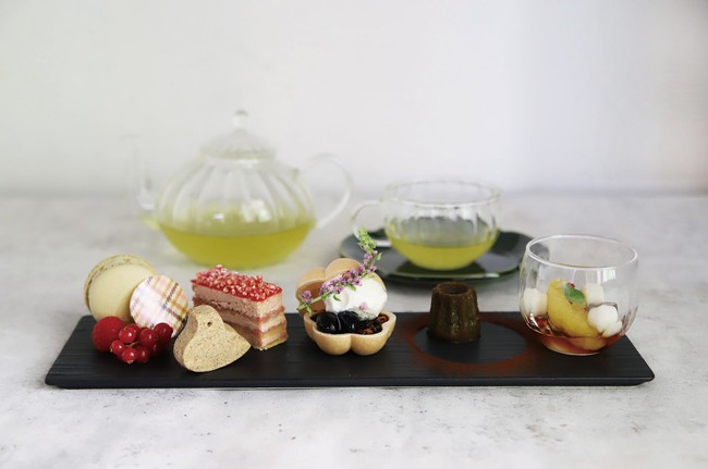 「スコットランド国立美術館 THE GREATS 美の巨匠たち」 タイアップティーセット。 スコットランドにちなんだスイーツと、凸凹茶房の和テイストを組み合わせた凸凹ティーセットをご用意しました。