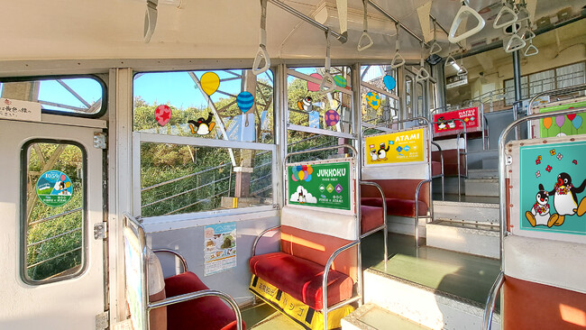 (1)車内外にピングーや仲間たちがいっぱい♪コラボケーブルカー特別運転