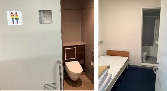 社員用施設における誰でもトイレ・ホテルタイプ休養室の整備例