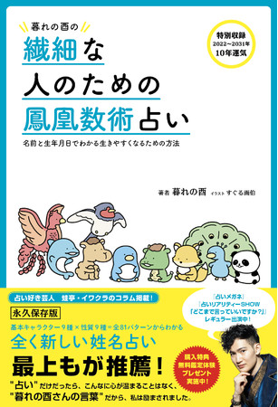 大阪ミナミの老舗占い館で18年間No.1の座に君臨。さらに8万人の鑑定実績を持ち、「とにかく当たる」「全力で励ましてくれる」「最後まで親身に寄り添ってくれる」と注目の占術家、暮れの酉のオリジナル占い、「鳳凰数術」は、名前の画数と生年月日(基本キャラクター9種×性質9種=全81パターン)からあなただけの動物キャラを導き出す、全く新しい姓名占いです。