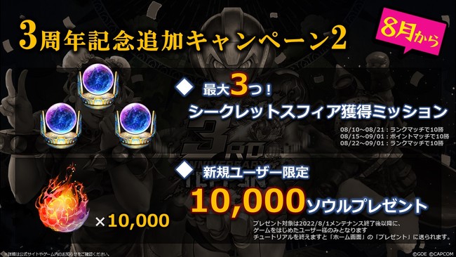 さらに、3周年記念追加キャンペーンとして、ログイン日数に応じてのシークレットカードのプレゼントや、シークレットスフィア獲得ミッションを実施します。詳細は公式サイトまたは、ゲーム内よりご確認ください。