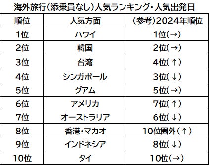 株式会社JTBは、夏休み期間(2025年7月15日~8月31日)の予約状況による海外・国内人気方面ランキングをまとめました。
