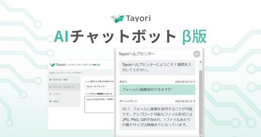 株式会社PR TIMES(東京都港区、代表取締役:山口拓己、東証プライム:3922、以下:PR TIMES)が運営するカスタマーサポートツール「Tayori」(読み:タヨリ)は、2024年2月28日(水)より、「AIチャットボット機能β版」を提供開始いたしました。