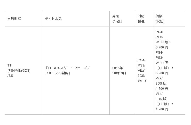 □出展形式 略称表記( TT:体験プレイ出展/SS:「TGS2016 セガブースステージ生放送!」配信 )
