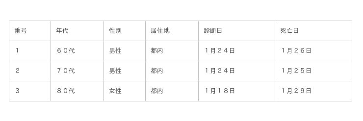 都内で新型コロナウイルスに感染した方が死亡されましたのでお知らせします。