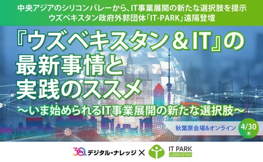 導入実績3,000超のeラーニング専門ソリューション企業、株式会社デジタル・ナレッジ(本社:東京都台東区、代表取締役社長:はが弘明)は、 2026年4月30日(木)、ウズベキスタン共和国デジタル技術省の外郭団体「IT-PARK」より招聘講演者を迎え、共催セミナー「『ウズベキスタン&IT』の最新事情と実践のススメ ~いま始められるIT事業展開の新たな選択肢~」を開催いたします。