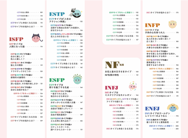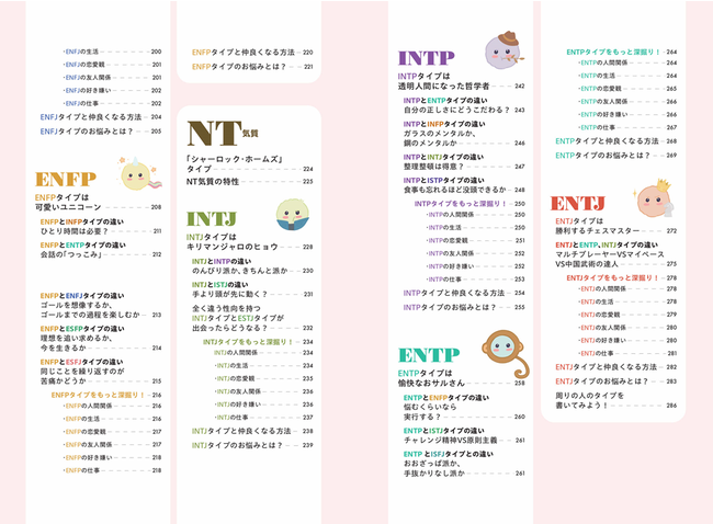 本書の特徴は、16タイプの性格だけではなく、人間関係や価値観までを深堀りします。「〇〇〇〇タイプと仲良くなる方法は?」「〇〇〇〇タイプのお悩みは?」それに対する、アドバイスまで。16タイプ別の特徴を知ったら、周りの人や自分ともっと仲良くなれるはず。