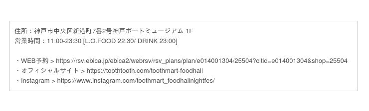 開催場所:TOOTH TOOTH MART FOOD HALL&NIGHT FES