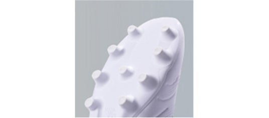 円錐形のスタッド構造と前足部のTPUアングルリムスタッドを備え、縦横無尽なプレーでも360度あらゆる方向への牽引力と安定した足元をサポート。
