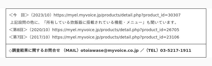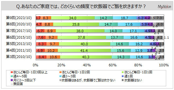 マイボイスコム株式会社(東京都千代田区、代表取締役社長:高井和久)は、9回目となる『炊飯器』に関するインターネット調査を2023年10月1日~5日に実施しました。調査結果をお知らせします。