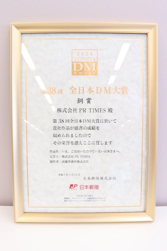 プレスリリース配信サービス「PR TIMES」等を運営する株式会社PR TIMES(東京都港区、代表取締役:山口拓己、東証プライム:3922)は、2024年3月14日(木)、日本郵便株式会社が主催するダイレクトメール(DM)施策に対する日本最大のアワード「全日本DM大賞」において、1年以上ご利用のないお客様にお送りしたメッセージ「いま、ご活用いただけていないお客さまへ。」が銅賞を受賞いたしました。当社として初の「全日本DM大賞」入賞となりました。
