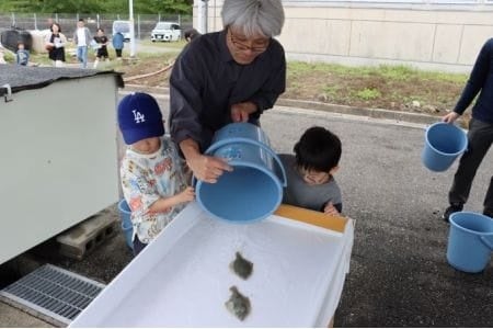 また、アマモ場は魚介類の産卵場、稚魚育成場など水産生物にとって多様で重要な役割を担うだけでなく、海中の水質の維持への貢献や、海底に根を張ることで土壌を固定し、波や潮の流れによって沿岸が侵食されるのを防ぎます。さらに、アマモは光合成による二酸化炭素吸収、酸素供給などブルーカーボンの重要な役割を果たしています。また、まちのブランド魚「城下かれい」を絶やさぬために、マコガレイの中間育成や稚魚の放流に取り組んでまいりますので応援してくださいますようお願いいたします。